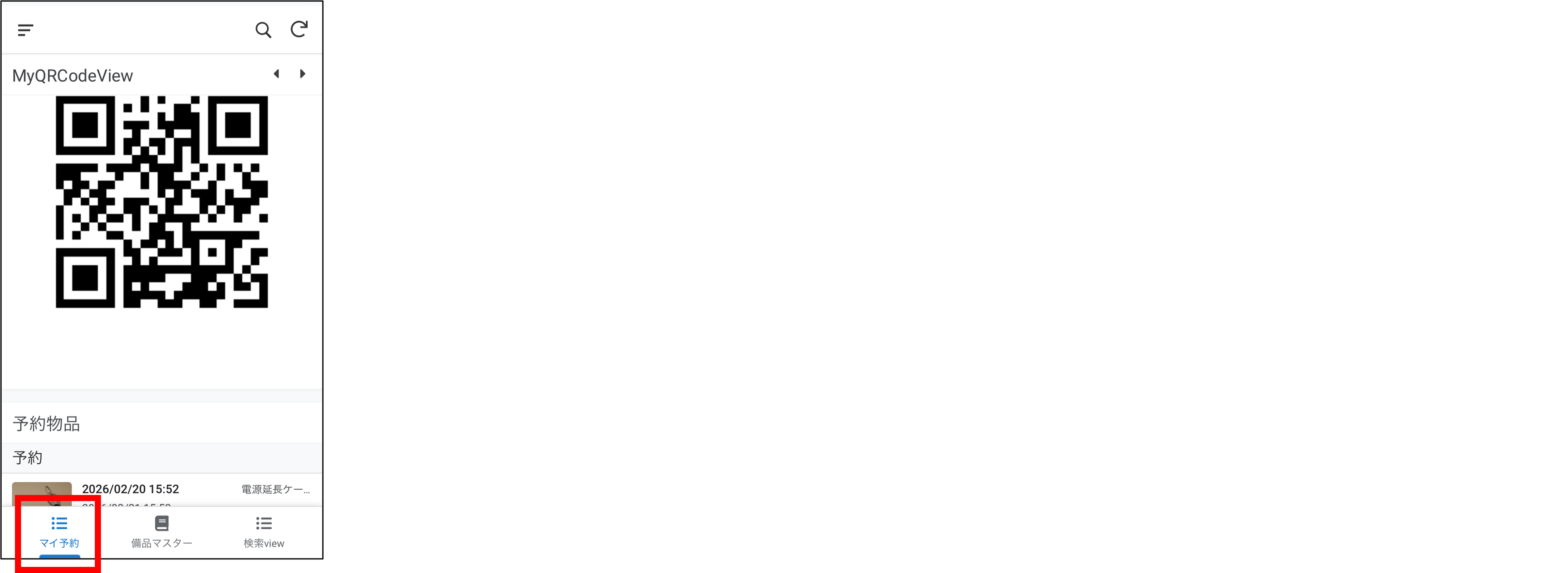 返却時も、窓口にて備品貸出システムの「マイ予約」画面をご提示ください。
